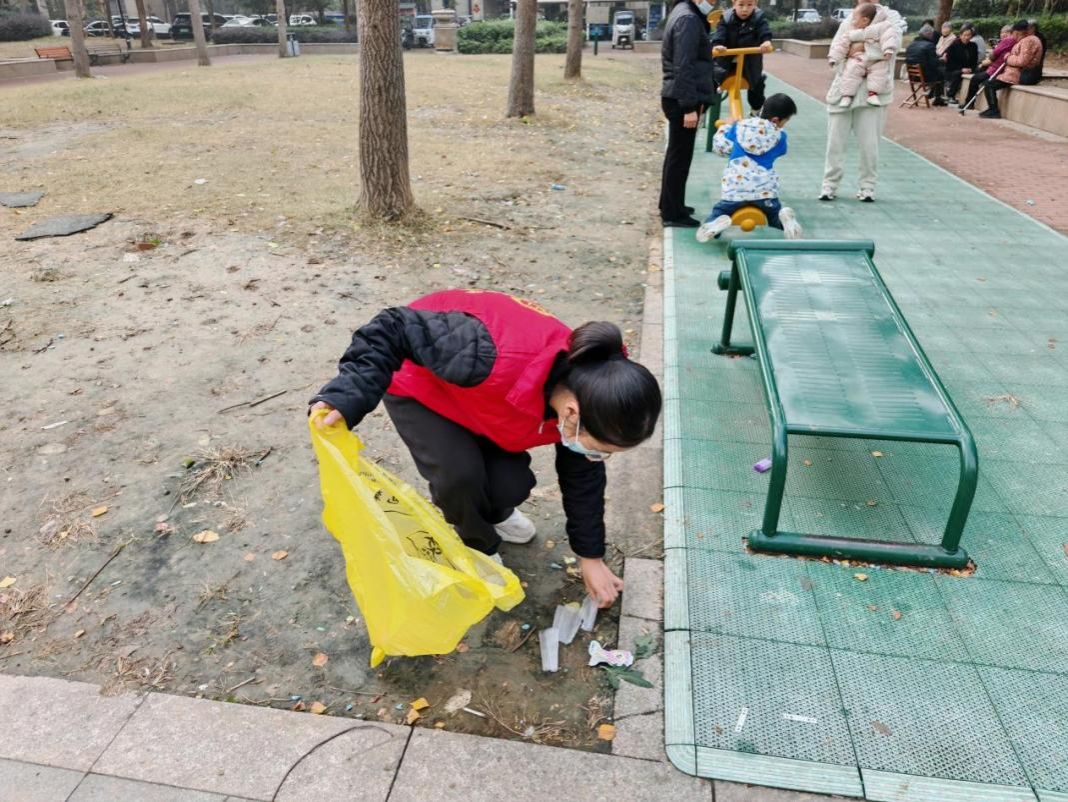 义诊结束后,志愿者响应“清洁家园”号召,分组清理社区公共区域垃圾杂物,用实际行动共建美好环境。
